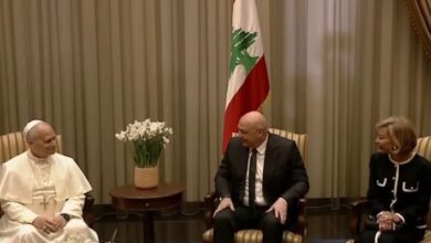 عرض ضوئيّ وفرقةُ دبكة يستقبلان البابا لاوون عند مدخل قصر بعبدا