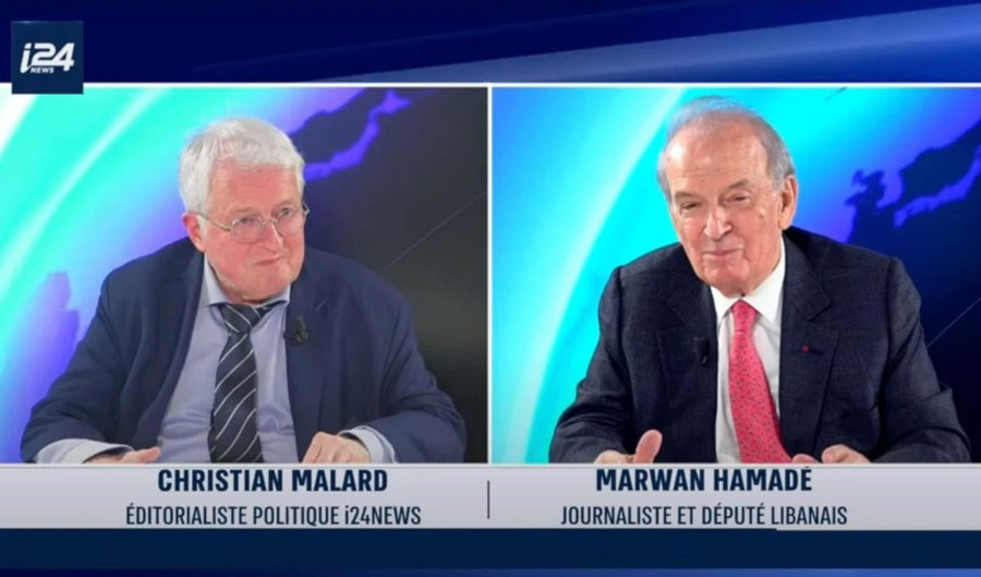بكلّ برودة أعصاب، ظهر حمادة متبسّماً في الاستديو مع الإعلامي كريستيان مالار على قناة i24 الإسرائيلية الناطقة بالفرنسية، متحدّثاً عن وقف إطلاق النار في غزّة ولبنان وأمور أخرى تدور في هذا الفلك. القناة معروفة بكونها الواجهة الإعلامية لكيان الاحتلال، وتبثّ بلغات عدّة بما فيها العربية دفاعاً عن سردية الاحتلال، وبذلت جهوداً كبيرة لتبييض الإبادة الجماعية التي ارتكبها في غزّة. يقع مقرّها في تل أبيب، وتعود إلى شركة «ألتيس» المملوكة للملياردير الفرنسي ــ الإسرائيلي باتريك دراهي، المعروف بصهيونيّته وعلاقاته مع مسؤولي الكيان.