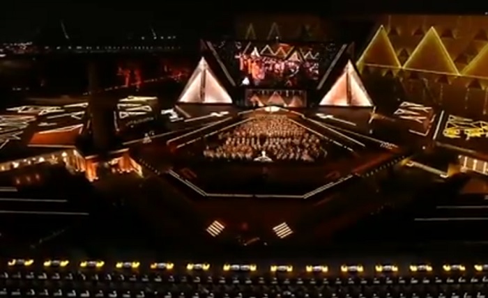 الافتتاح تخلل عرضاً مُذهلاً في سماء الجيزة، حيث تزينت السماء بأشكال ملوك الفراعنة والأهرامات باستخدام تقنية الهولوغرام، وفق ما ذكرت صحيفة “صدى البلد” المصرية.