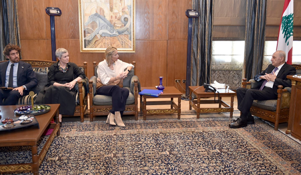 إستقبل رئيس مجلس النواب نبيه بري الممثلة الخاصة للإتحاد الأوروبي لحقوق الإنسان كايسا أولونغرين والوفد المرافق، في حضور سفيرة الإتحاد الاوروبي لدى لبنان ساندرا دو وال، حيث تم البحث في تطورات الأوضاع العامة وسبل التعاون بين لبنان والإتحاد الأوروبي في مجال حقوق الإنسان .